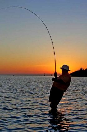 (Pictured: man fishing at sunset in Ambergris Caye.)